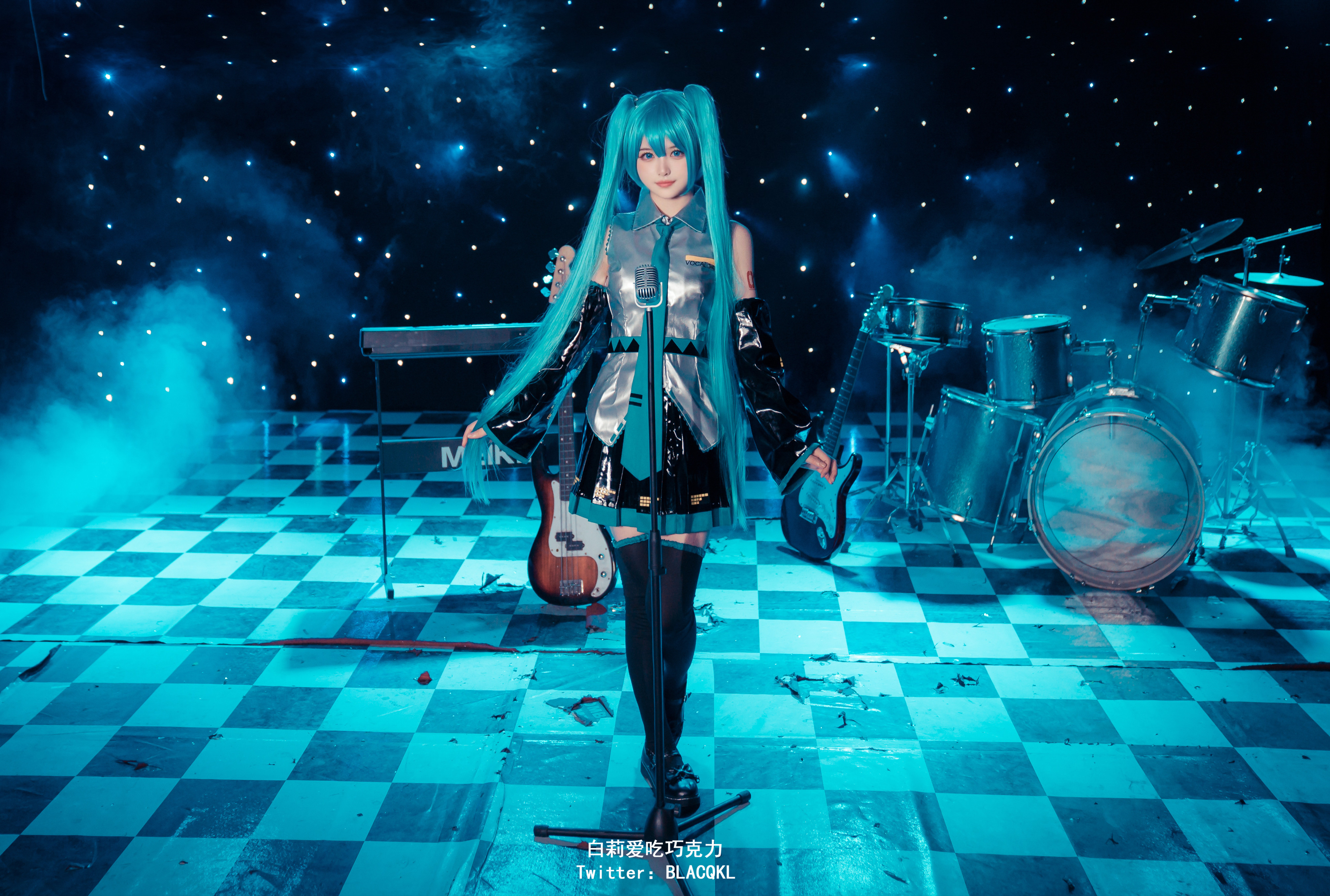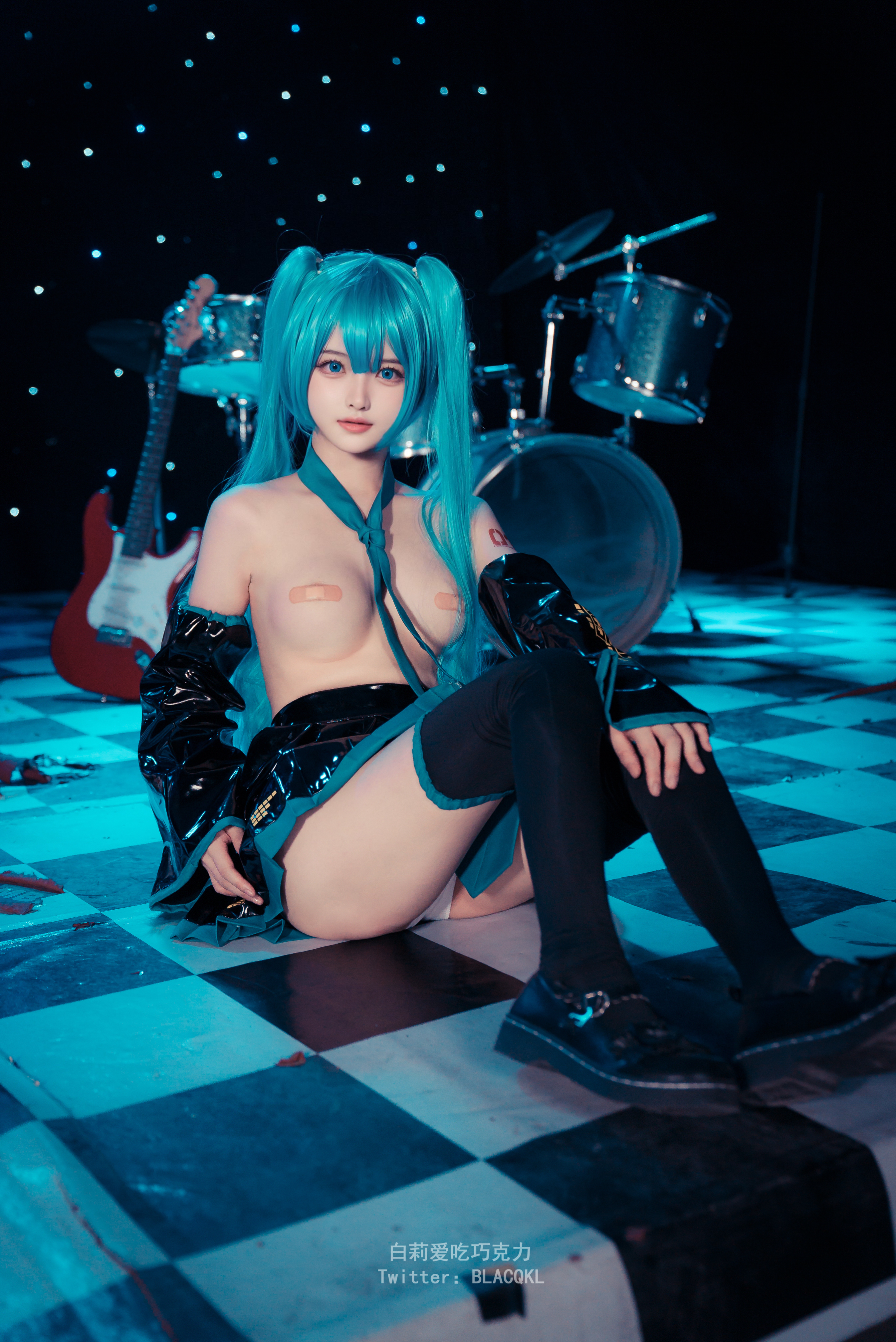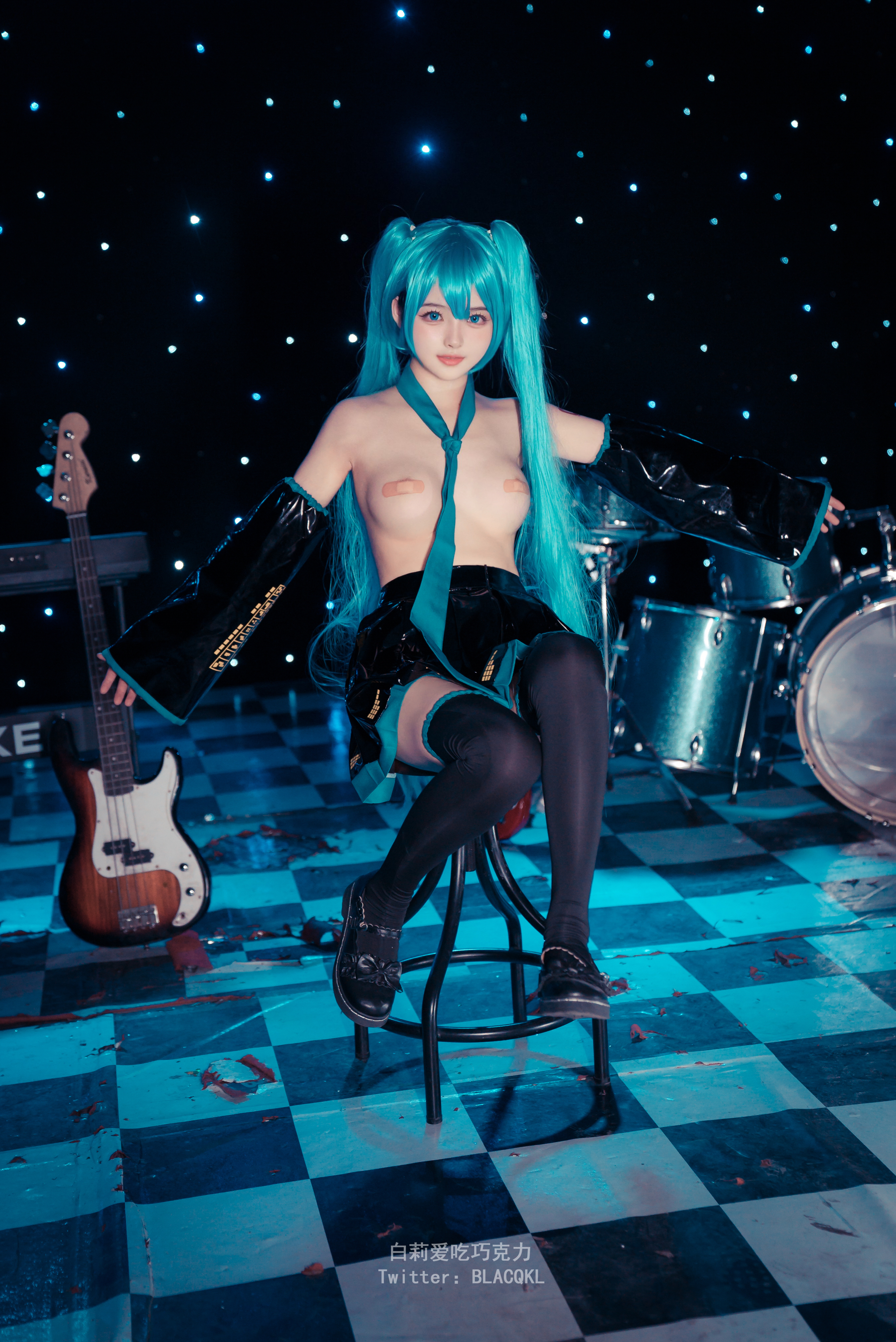 萌新推特00后露脸网红美少女▌白莉爱吃巧克力▌Cos初音未来 香艳酥乳粉嫩白虎演唱会 精美私拍