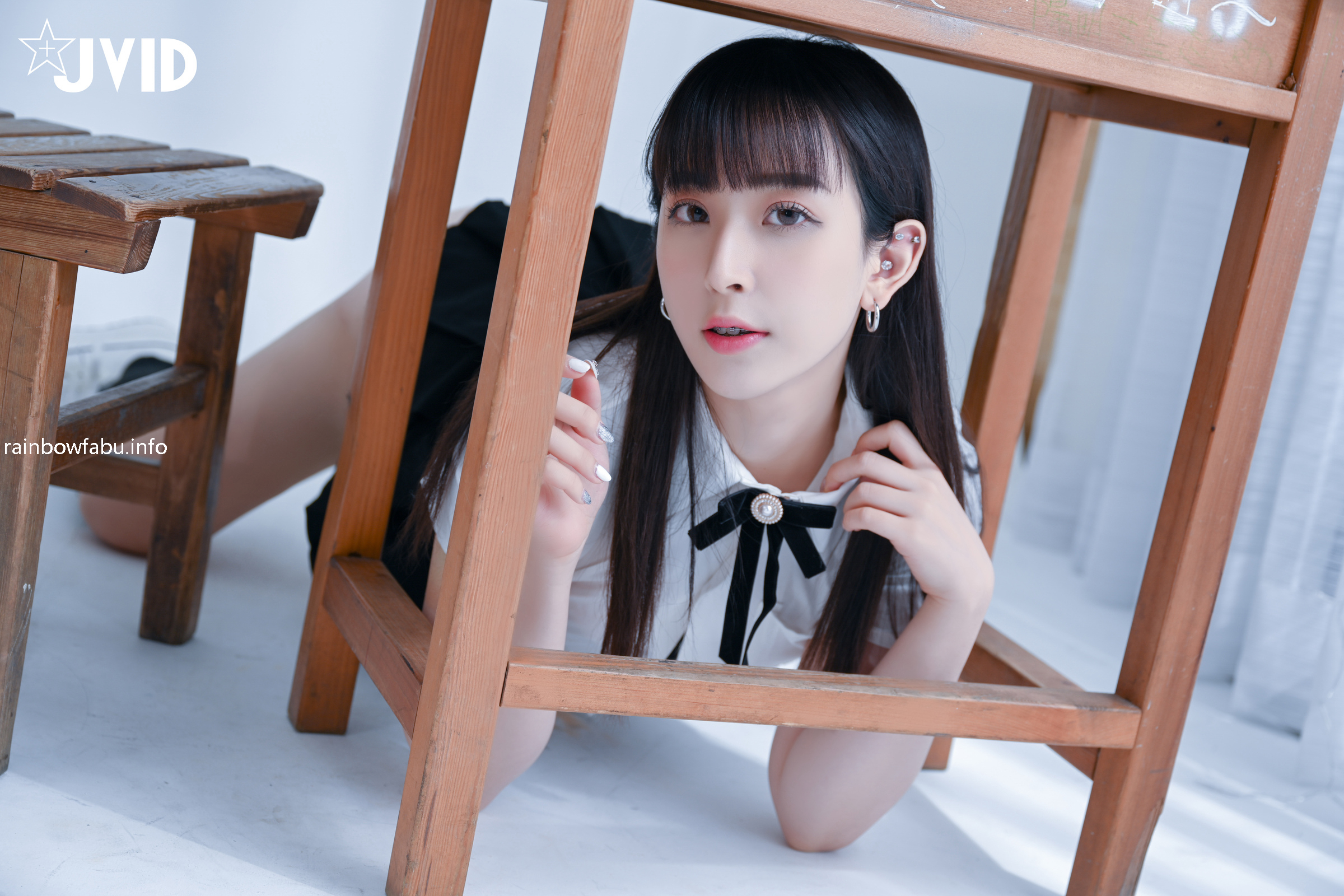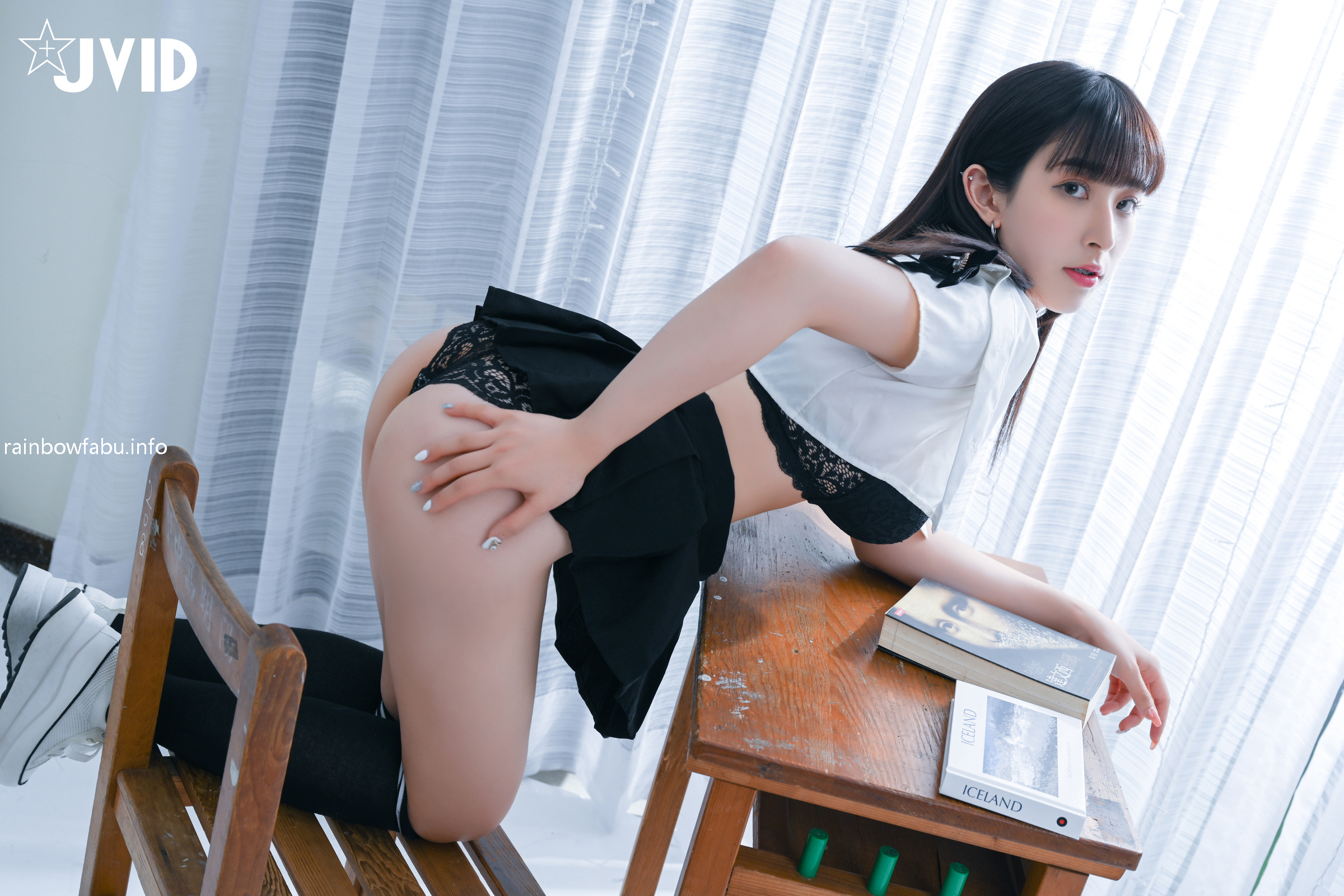 極品JVID嫵媚清純齊一身新人▌黛娜 ▌黑色蕾絲性感內衣 挺翹美乳稚嫩誘人裂縫 誘惑喜歡的男老師